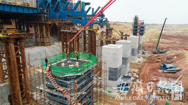 引江濟淮淠河總干渠鋼渡槽主墩澆筑完成